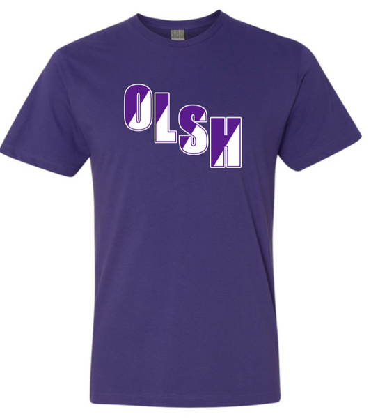 OLSH YOUTH & ADULT FINE COTTON JERSEY SHORT SLEEVE SPLIT DESIGN T-SHIRT - BLACK OR PURPLE